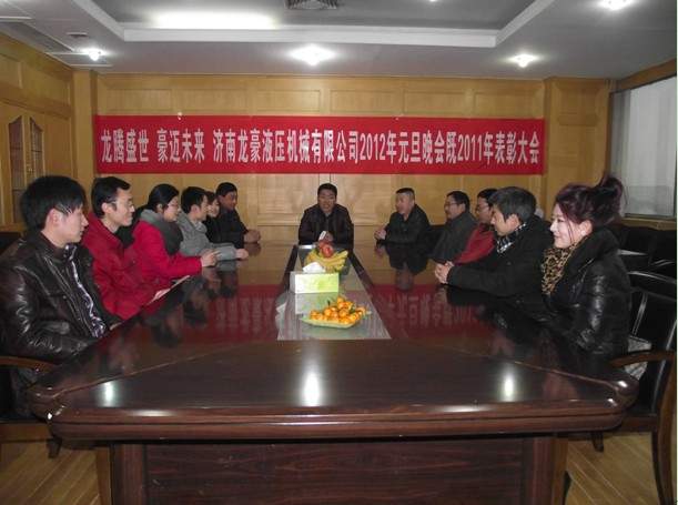 龍騰盛世,豪邁未來(lái),濟(jì)南龍豪液壓機(jī)械設(shè)備有限公司于2011年12月31日于公司總部召開(kāi)了2011年表彰大會(huì),同時(shí)也為慶祝2012年元旦晚會(huì),首先,公司負(fù)責(zé)人張總及廠領(lǐng)導(dǎo)的蒞臨公司在年底召開(kāi)的年終總結(jié)大會(huì),宏觀的總結(jié)了在過(guò)去的2011年的工作、業(yè)績(jī)情況以及在未來(lái)的2012年里的奮斗目標(biāo)和公司的發(fā)展方向。公司銷售部負(fù)責(zé)人也就在2011年的銷售狀況和工作內(nèi)容進(jìn)行了詳細(xì)的分析和具體的數(shù)據(jù)統(tǒng)計(jì),也為新一年的銷售情況制定目標(biāo)和銷售項(xiàng)目;廠里技術(shù)部負(fù)責(zé)人總結(jié)現(xiàn)有的技術(shù)基礎(chǔ),為明年的技術(shù)創(chuàng)新和改革而努力;生產(chǎn)部負(fù)責(zé)人也進(jìn)行了總結(jié)性的發(fā)言,積極配合銷售部的工作,做銷售部堅(jiān)實(shí)的后盾。此外,公司領(lǐng)導(dǎo)也對(duì)優(yōu)秀員工進(jìn)行表彰,激勵(lì)員工為下一年的工作繼續(xù)努力,更創(chuàng)輝煌!